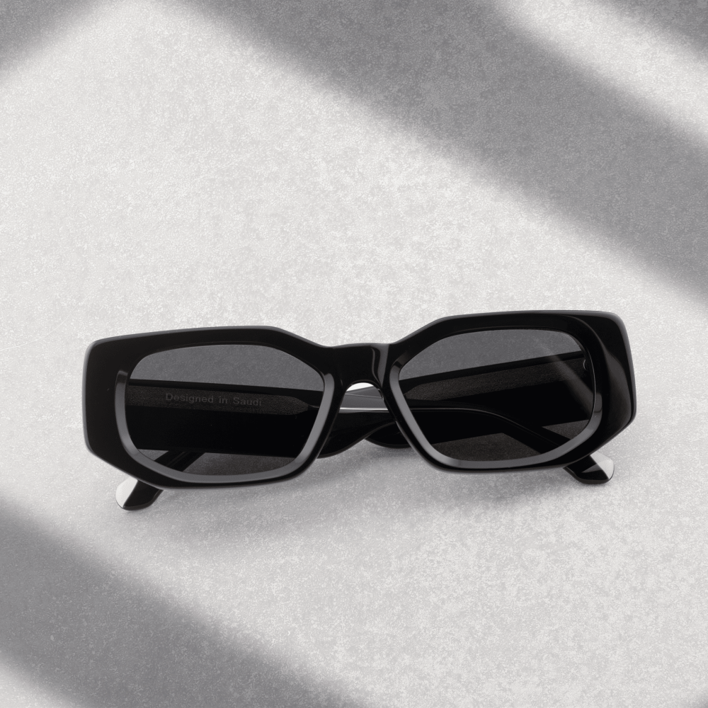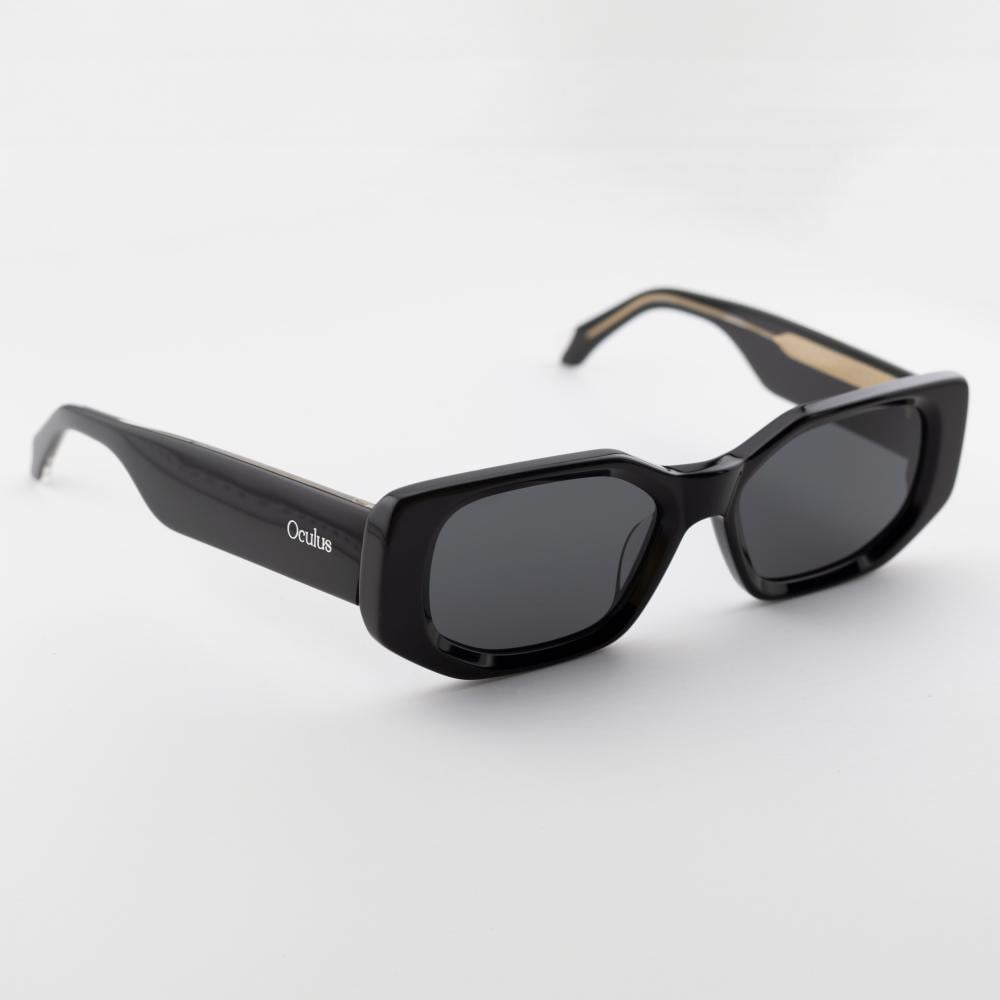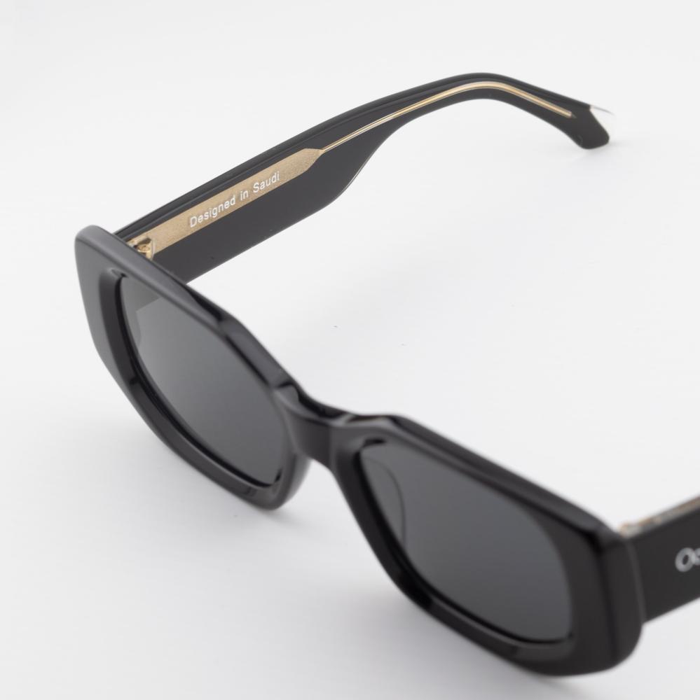 نظارات شمسيةنظارة قاما من اوكلس مصنوعة من الأسيتيت باللون الأسود, تتميز بشكلها المستطيل وتحتوي على حماية UV-400 لتحمي عينيك من أشعة الشمس.