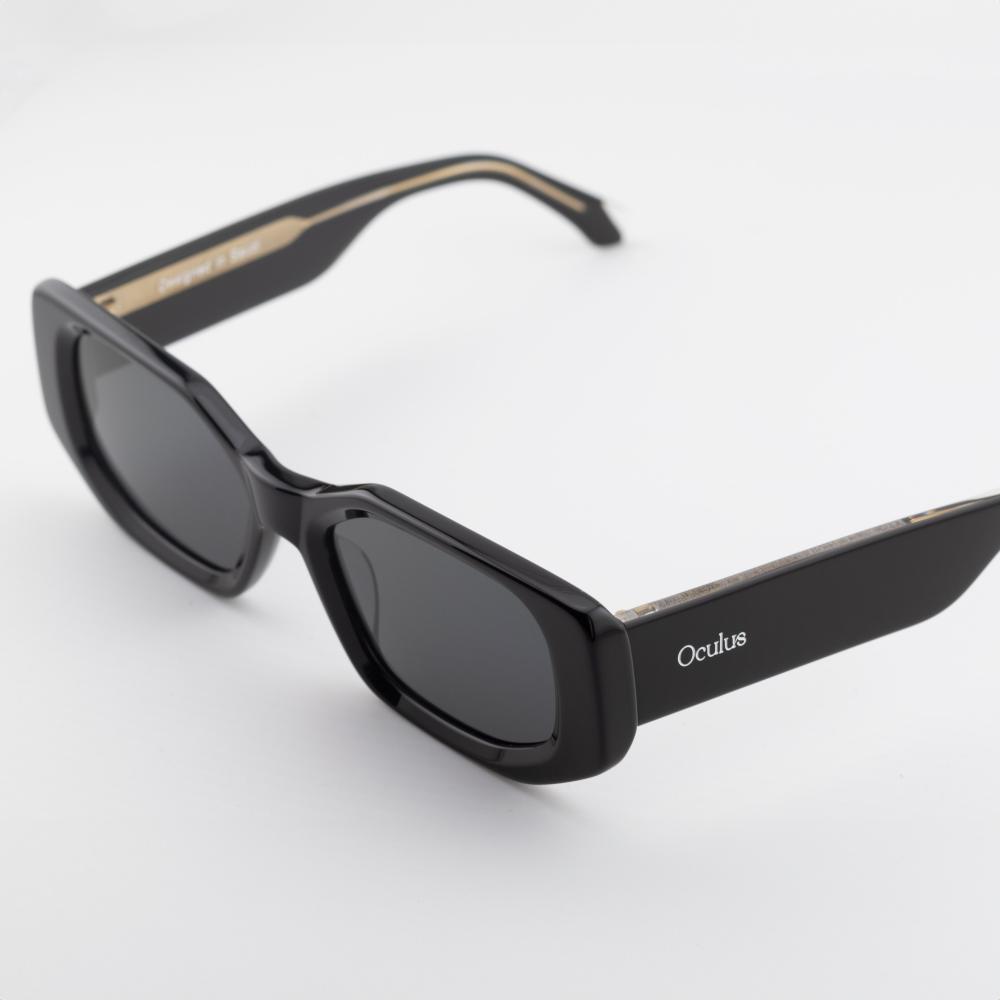 200نظارة قاما من اوكلس مصنوعة من الأسيتيت باللون الأسود, تتميز بشكلها المستطيل وتحتوي على حماية UV-400 لتحمي عينيك من أشعة الشمس.
